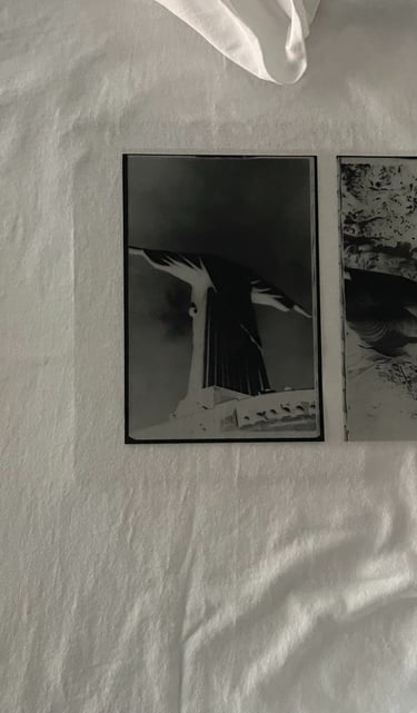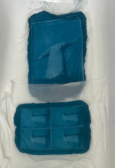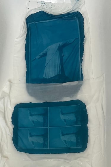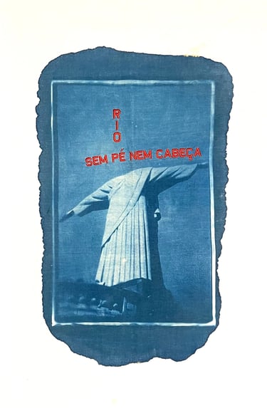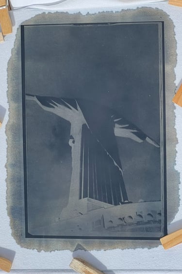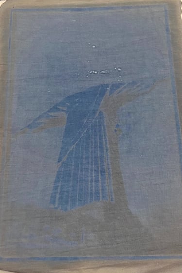 FOTO ANALÓGICA EN REVELADO DE CIANOTIPIA SOBRE TEXTIL E BORDADO